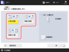 コピーの画面[両面設定]画面が表示されます。