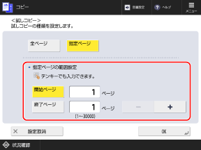 ※ページを指定して試しコピーした場合は、仕上げの処理は行われません。