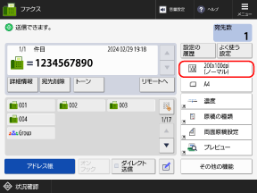 ファクスの画面で、解像度の設定ボタンを押す