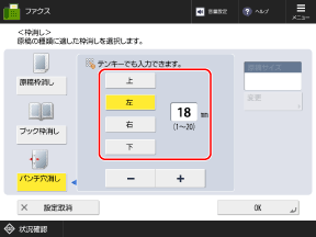 パンチ穴の位置を選択し、消し幅を入力する