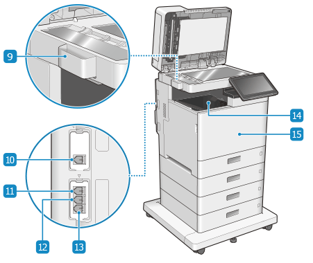 オプション装着時の本機の構成と、オプション機器の各部の名称については、以下を参照してください。