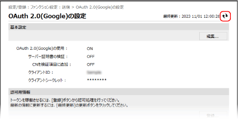 ※OAuth2.0認証の設定をしたあとに、日付/時刻の設定を変更した場合は、OAuth2.0認証設定をやりなおします。