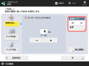 [変更]を押し、原稿サイズを選択して、[OK]を押します。