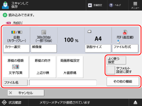 スキャンするたびに、スキャンの画面の[その他の機能]