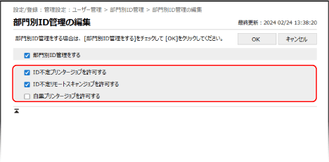 部門IDが不明なパソコンからのプリント/スキャン/ファクス送信を制限する場合