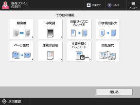 プリント設定画面で[その他の機能]を押すと、[その他の機能]画面が表示されます。
