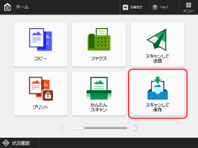 操作パネルの[ホーム]画面の[スキャンして保存]から、本機で文書をスキャンして、スキャンデータをアドバンスドボックスに保存します。スキャンして保存する