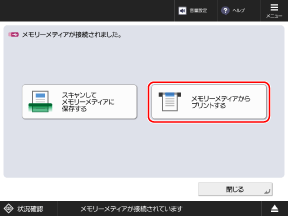 [メディア情報確認]を押し、USBメモリーを選択して[詳細情報]を押すと、USBメモリーのシリアルナンバーなどを確認できます。