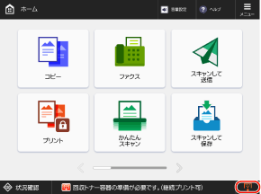状況確認]を押し、[消耗品/その他]で用紙設定を確認します