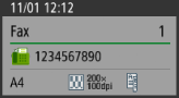 Displays the number of destinations*1, destination, original size, resolution, 2-sided, and file format settings.