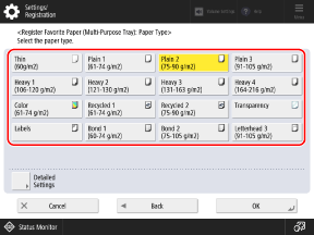 Press [Detailed Settings], and select the paper type from the displayed list.