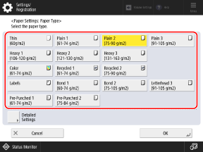 Press [Detailed Settings], and select the paper type from the displayed list.