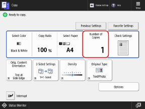 Copying Immediately (Interrupt)* When making a large number of copies, you can make a copy sample to check the finished result, or you can copy the original one page at a time to check the appearance before copying all of the pages together.