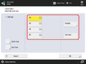 * If this is set to [Free Size], the original can only be placed in the feeder.