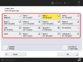 Press [Detailed Settings], and select the paper type from the displayed list.