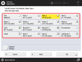 Press [Detailed Settings], and select the paper type from the displayed list.