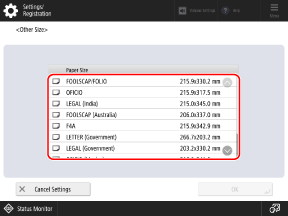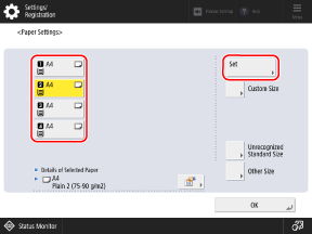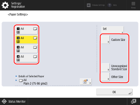 If paper of a size that is not detected automatically is loaded, press [Unrecognized Standard Size] to select the size of the loaded paper.
