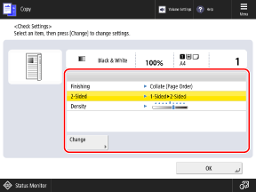 You can press [Check Settings] to display the configured settings in a list and check them together.