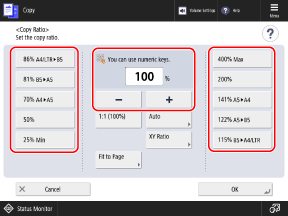 Copy ScreenThe [Copy Ratio] screen is displayed.
