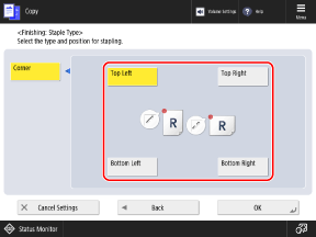 Copy ScreenThe [Finishing] screen is displayed.