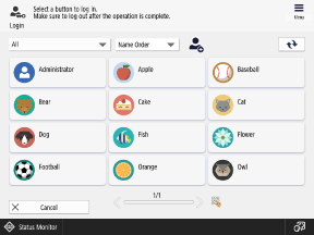 Users select their user name displayed on the control panel to log in, eliminating the need to enter a user name. You can also require users to enter a PIN or pattern to prevent unauthorized login.