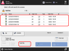 When operating and editing files using Remote UI from a computer, operate and edit the files from [Access Received/Stored Files] on the Portal page. However, you cannot use Remote UI to operate and edit some items.