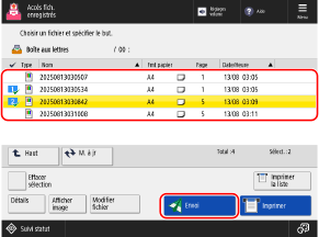 Vous pouvez sélectionner et envoyer simultanément jusqu'à 32 fichiers enregistrés dans la même boîte aux lettres.