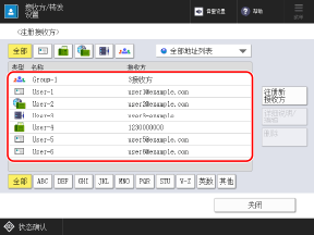 在扫描(扫描后发送)或传真屏幕上,可以按下 [地址簿] 以从地址簿屏幕编辑或删除目的地。