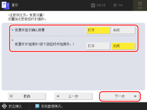 将 [恢复时显示确认屏幕] 和 [恢复时开始操作] 设置为 [打开]。