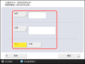 输入按钮名称和注释,然后选择 [个人] 或 [共享]。