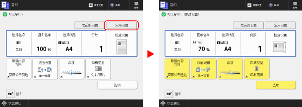 使用扫描、复印或其他功能时,可根据用途从已注册的“常用设置”中调用设置。