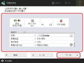 可以配置在调用“常用设置”进行扫描(扫描后发送)、传真和复印时不显示用于检查设置的屏幕。如此,您便可以在不执行步骤