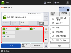 根据机器的设置,可能也会在扫描屏幕上显示传真目的地的单触按钮。[显示传真功能]