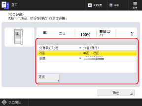 复印时可以使用该屏幕上的设置按钮配置设置。
