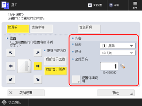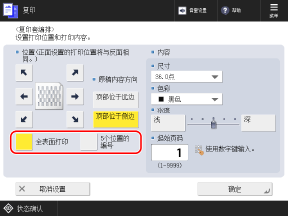 * 如果配置在复印套编号中添加其他信息的设置,则不能选择 [全表面打印] 和 [5个位置的编号]。