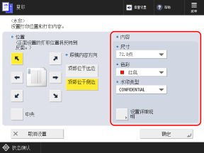 可以按下 [设置详细说明] 更改要打印水印的页面,或更改打印方法(透明打印或叠加打印)。