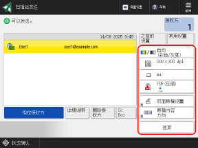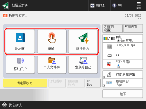 可以按下 [之前的设置] 来调用之前使用的扫描数据发送设置。调用设置时会应用之前的发送接收方。