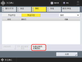 如果未显示 [检查互联网传真接收],请在屏幕右上的下拉菜单中选择 [接收]。