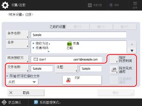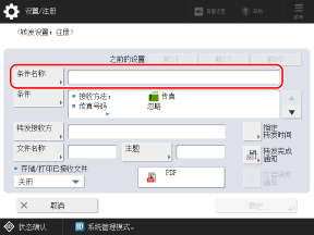 本节介绍如何使用控制面板配置这些设置。在控制面板上,还可以通过选择 [主页] 屏幕中的 [接收方/转发设置] [转发设置] 来配置设置。