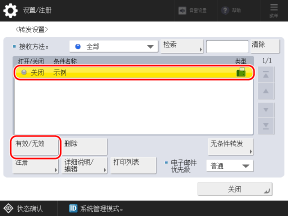 选择已注册的转发条件,然后按下 [有效/无效]。