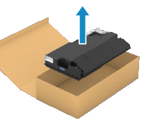 轻轻向上抬起废粉收集容器,直接将其拉出,小心不要使里面的墨粉外泄。