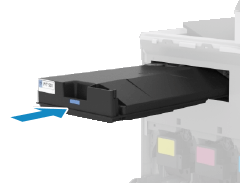 用力将其尽可能向里推入。如果废粉收集容器未完全推入,取出废粉收集容器时墨粉可能会散落。