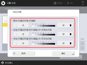 如果扫描数据或打印结果的色彩浓度与源数据或原稿明显不同,请执行纠正,使扫描时的浓度更接近原稿的浓度。可以纠正每种功能的浓度。