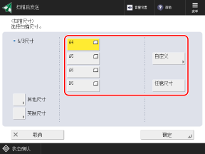 注册常用的原稿尺寸后,可通过按 [已注册尺寸1] 至 [已注册尺寸5] 来调用这些设置。