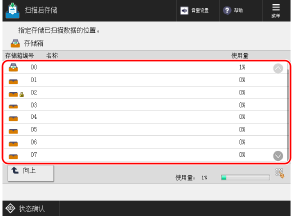存储箱设置屏幕底部的 [使用] 指示所有存储箱的总体使用情况。