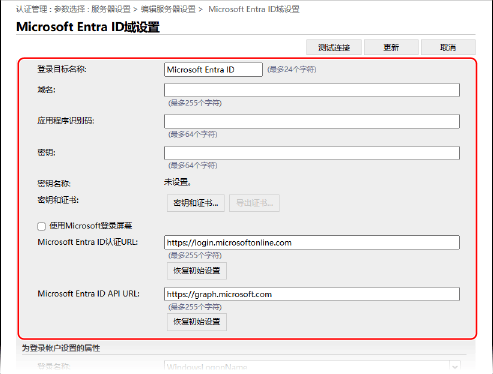 在 [认证服务器] 中配置激活目录、LDAP 服务器或 Microsoft Entra ID 信息。