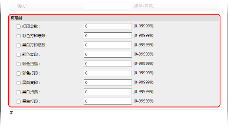 要限制可打印、扫描或复印的页数,请选择所需项目并输入最大页数。