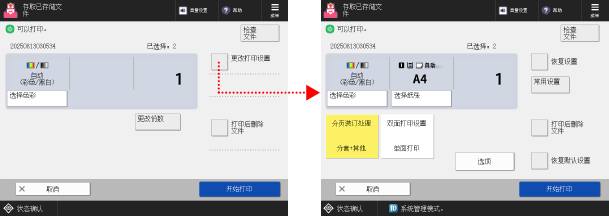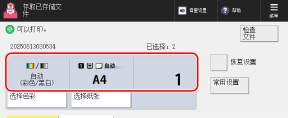 在存储箱的文件选择屏幕上选择一个文件,然后按下 [打印] 可显示打印设置屏幕。