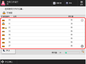 存储箱设置屏幕底部的 [使用量] 指示所有存储箱的总体使用情况。