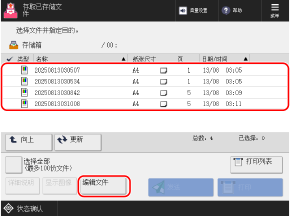 可以使用机器的控制面板或远程用户界面来操作和编辑保存到存储箱的文件(如下所示):